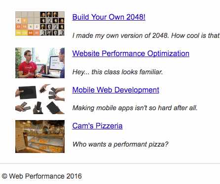 This was an exercise in Web Optimization, specifically for Cam's Pizzeria, using the Google optimization concept of RAIL